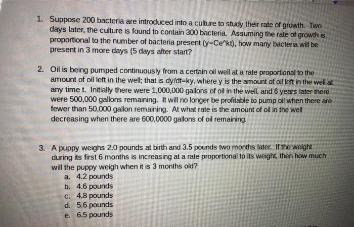 Solved 1 Suppose 200 Bacteria Are Introduced Into A Culture Chegg Com